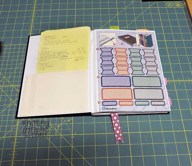 This book is where I keep all the information about my knitting projects. It’s the record of the pattern, yarn, needle size, date, stitch and row counts, and anything else that relates to the project.