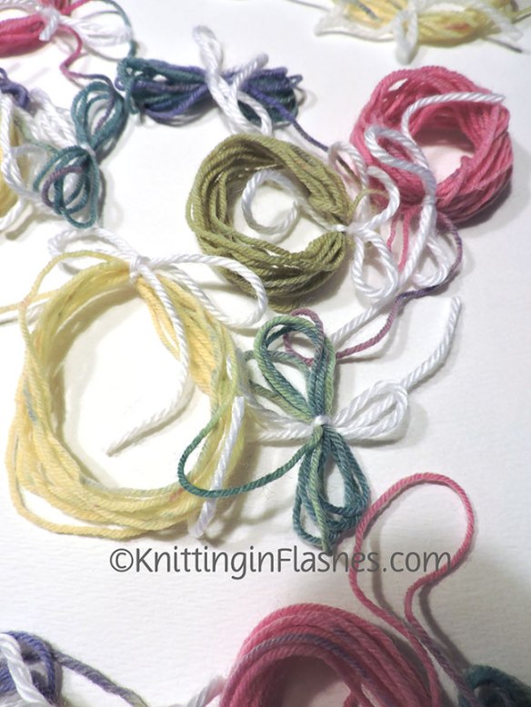 Then the yarn is dunked into each dye cup leaving some of the yarn out.