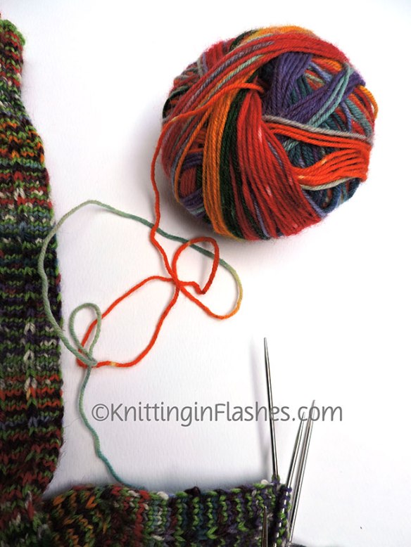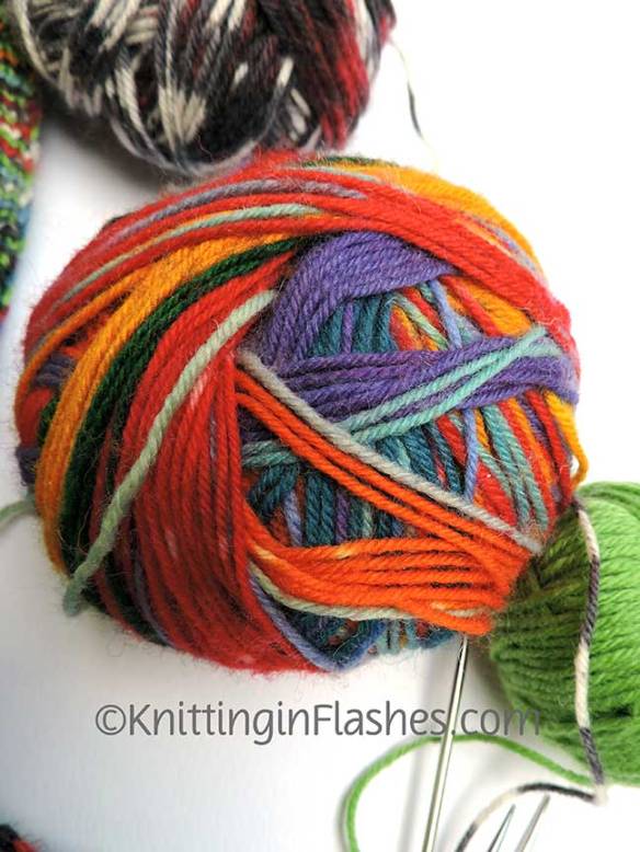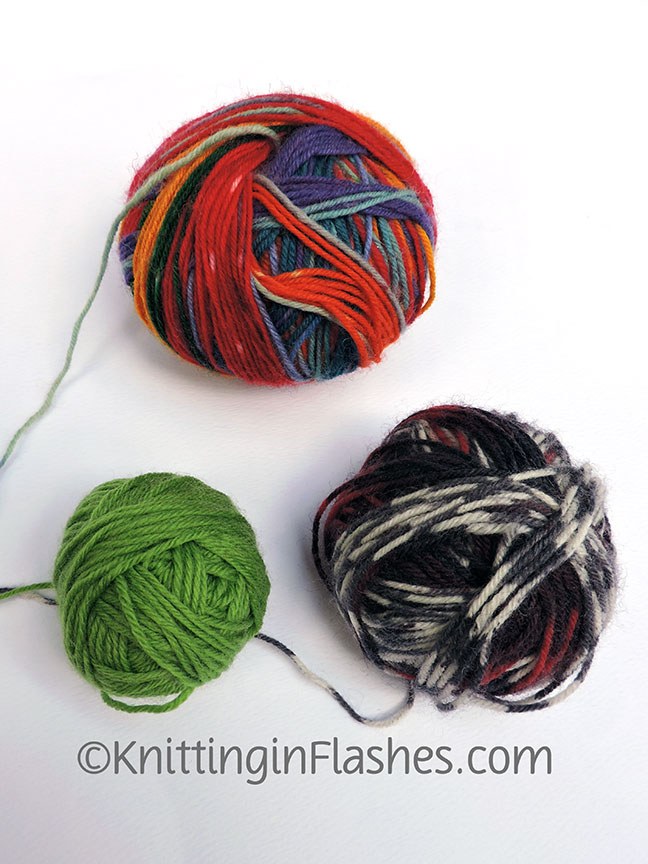 Mixed with two other balls of yarn for another pair of Dorothy’s Slipped-Stitch Spiral Knit Socks!