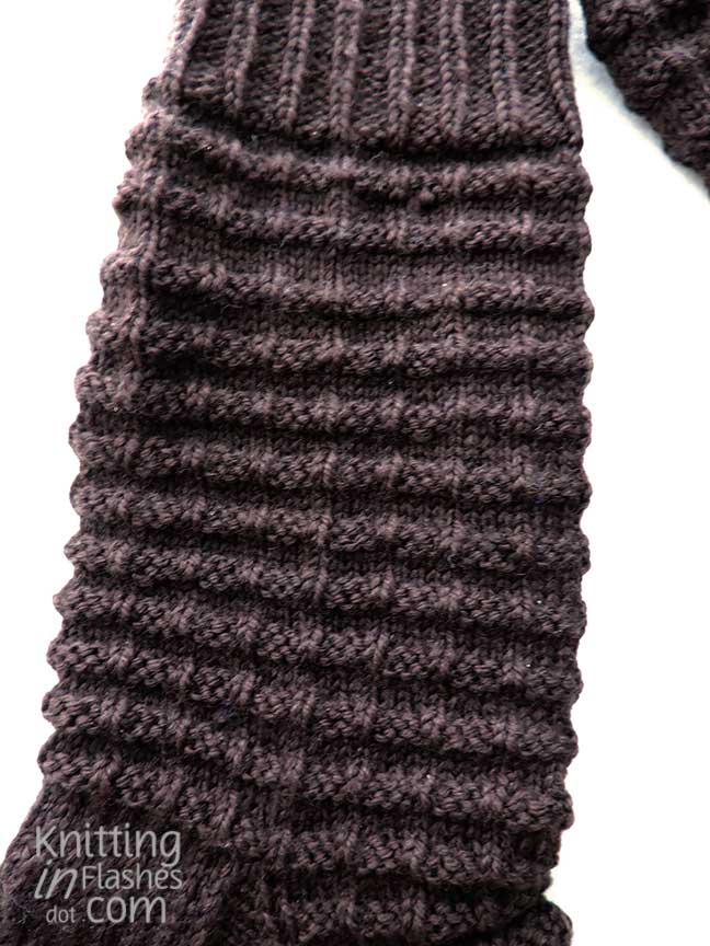 It’s a simple knit-purl texture similar to a waffle weave that will keep one’s feet and legs very warm.