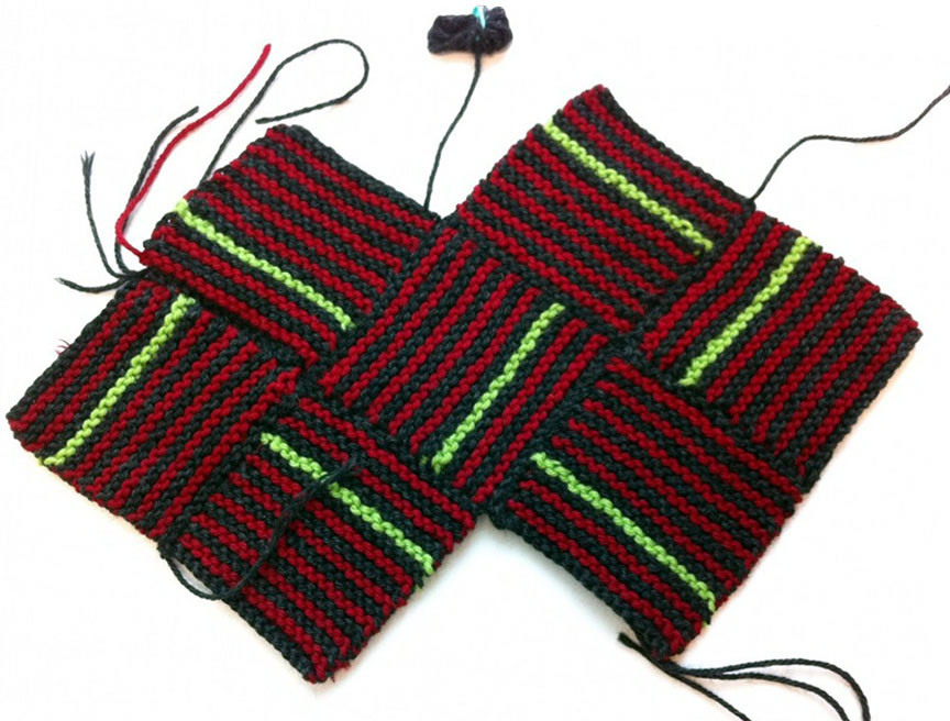Same two colors of green, coordinating floss and some red pom poms. I decided to machine stitch the lighter green instead of stem stitch as my stem stitch isn’t very good. The pom poms were glued on. You can see the glue but it did dry clear. I’m thinking I should have secured them with a few stitches. Time will tell if I need to do that.
