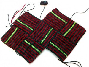 They look a bit blue but are really two shades of green, some coordinating floss and a few buttons.
