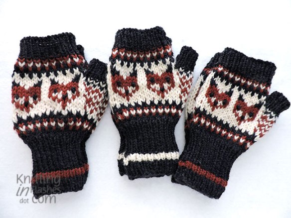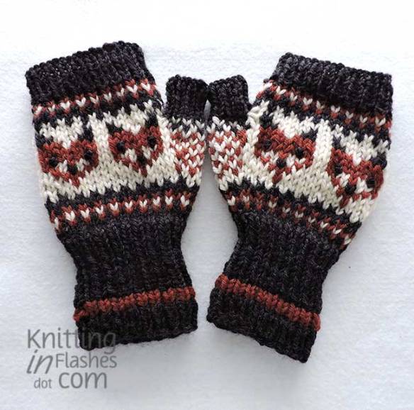 I didn’t know a group of foxes is called a skulk. Did you? Anyway, I have a skulk of Foxy mitts.
