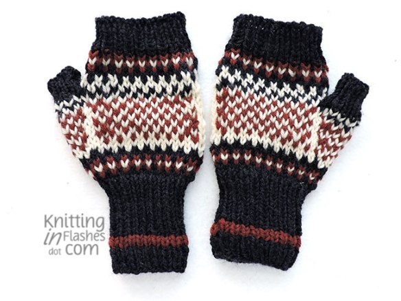 After knitting the first pair, I decided to change the palm chart of the mitts to the checkerboard pattern of the thumb.