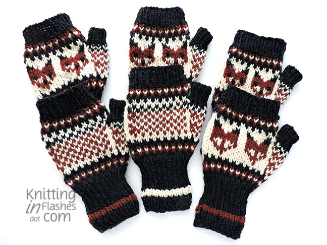 I didn’t know a group of foxes is called a skulk. Did you? Anyway, I have a skulk of Foxy mitts.
