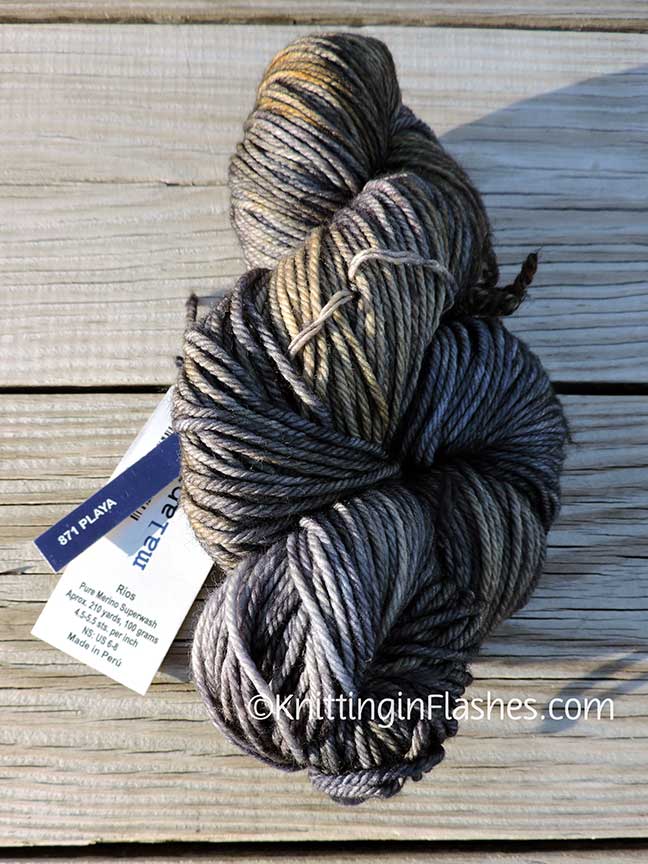Don’t Skid, Honey mitts were so fun to knit. Malabrigo Rios in the yummy Playa color is so soft and easy to work with. The color is closer to the photos of the finished mitts…blues, greys, and some gold. I love it.