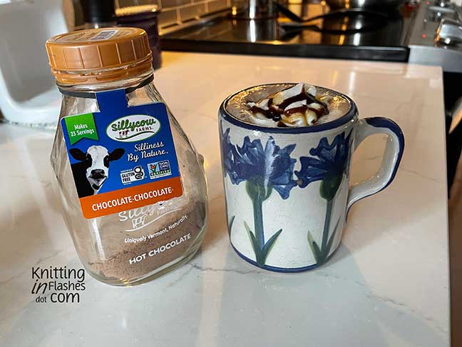 I played yarn chicken, meaning I didn’t know if I would have enough yarn to complete the project. And I didn’t. Of course, I didn’t realize that until I looked at the dwindling yarn ball the eighteen unfinished rows of the pattern. Enter yarn #2. Click here for more details.
