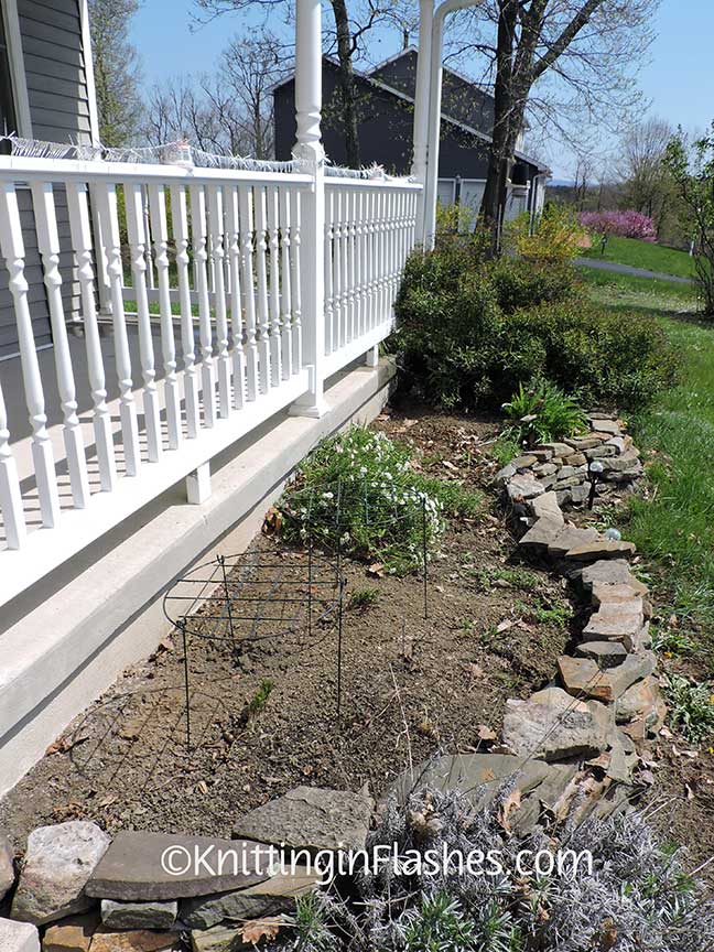 Those round “grates” above should keep my Balloon flowers from falling over. I have a third plant farther back that hasn’t started to emerge yet so I’ll need to buy another one of those supports. I should have taken some “before” pictures but when I thought about it, it was too late to get my camera.