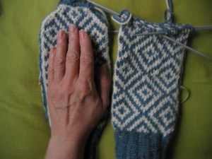 Ms Ida mittens are slowly coming along. The slippers are semi mindless knitting and I needed something like that this weekend while I was trying to declutter and clean my house for a party we’re having this weekend.