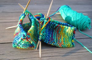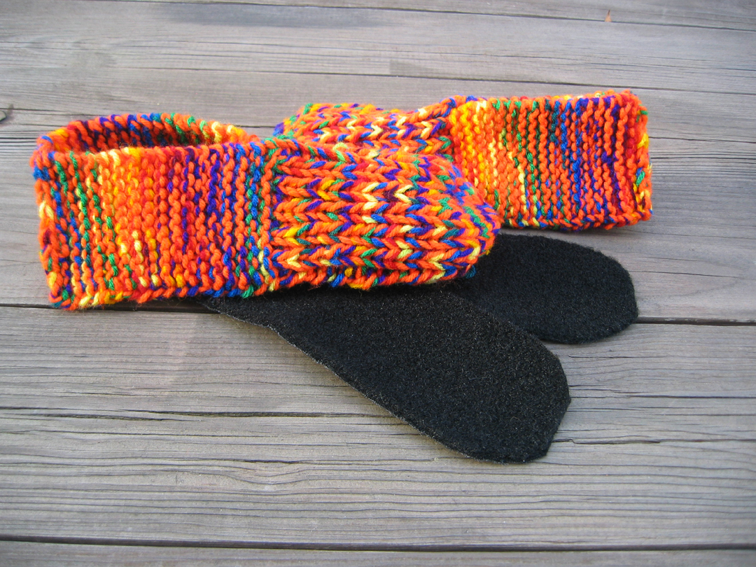 These were originally for me so I decided to cast on another pair using free green yarn and the variegated color to put away for later use or gifting.