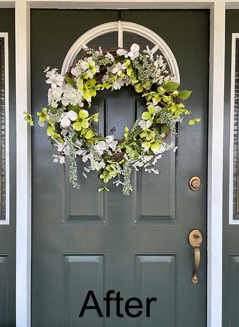 Actually I made that one a few years ago until some birds started making a nest in it. I love the wild birds in our area but I don’t want them nesting, pecking, chirping, or pooping on my front door. Looks like I might need to polish the door knob again.