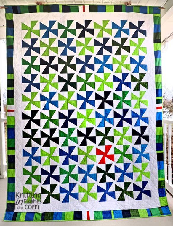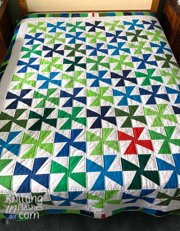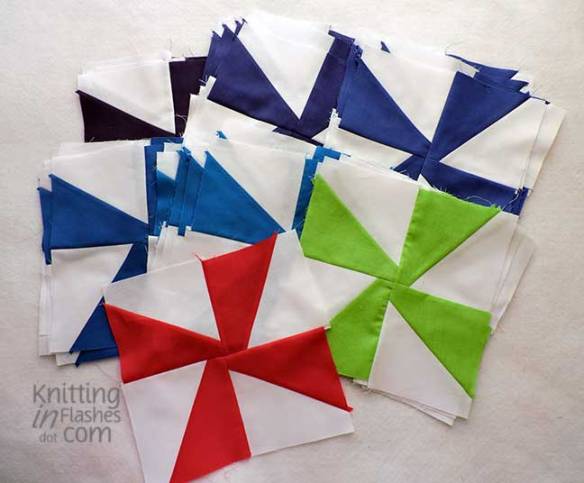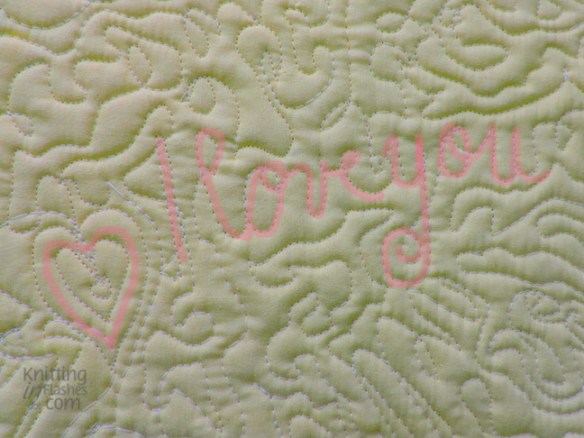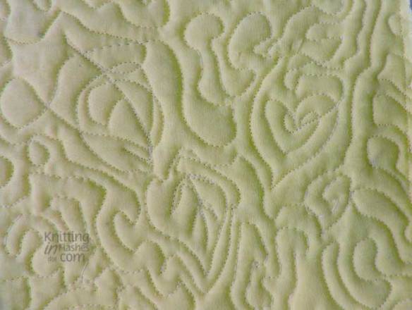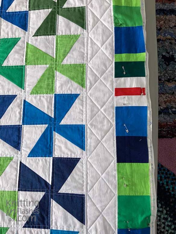 I didn’t bind the edges but simply sewed the front and back together leaving a 4-5 inch open section to turn it right-side out. Then I machine quilted about a 1/4-inch inside each block.