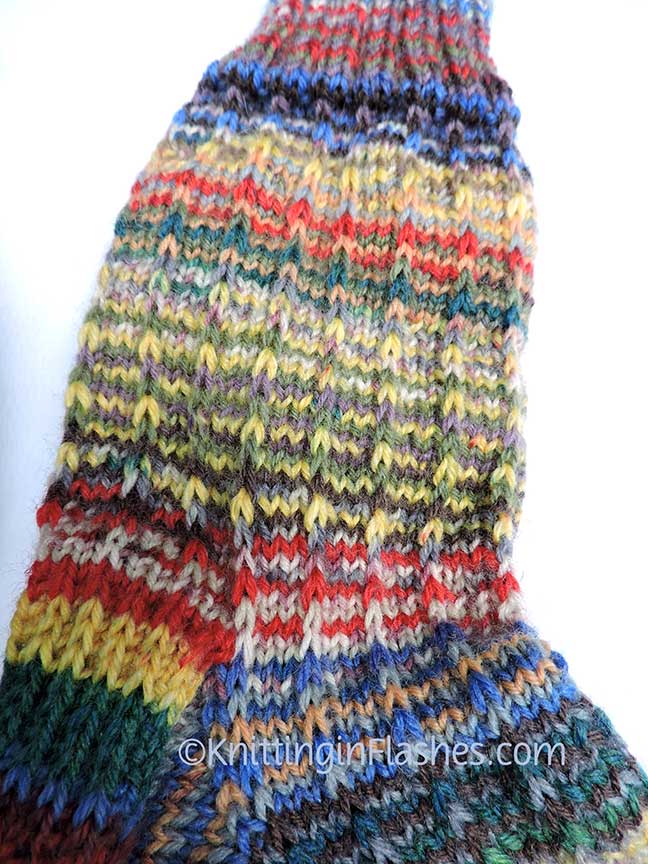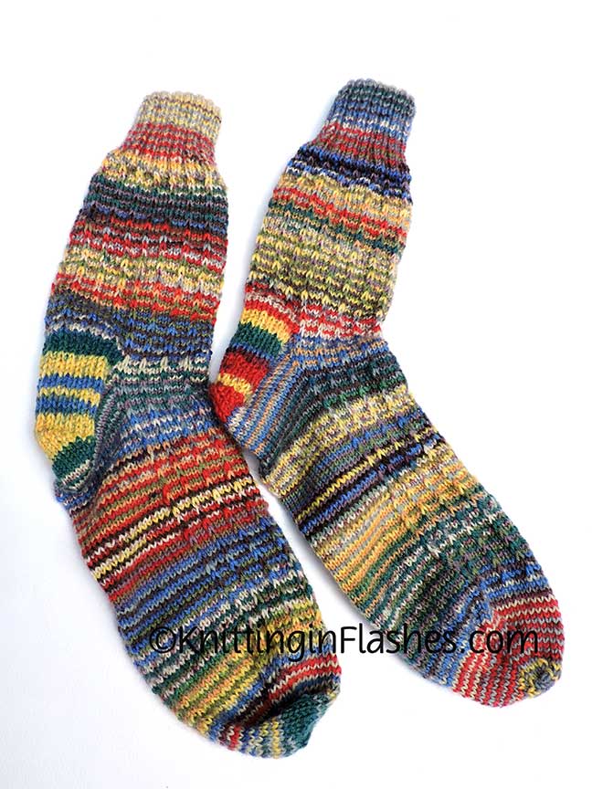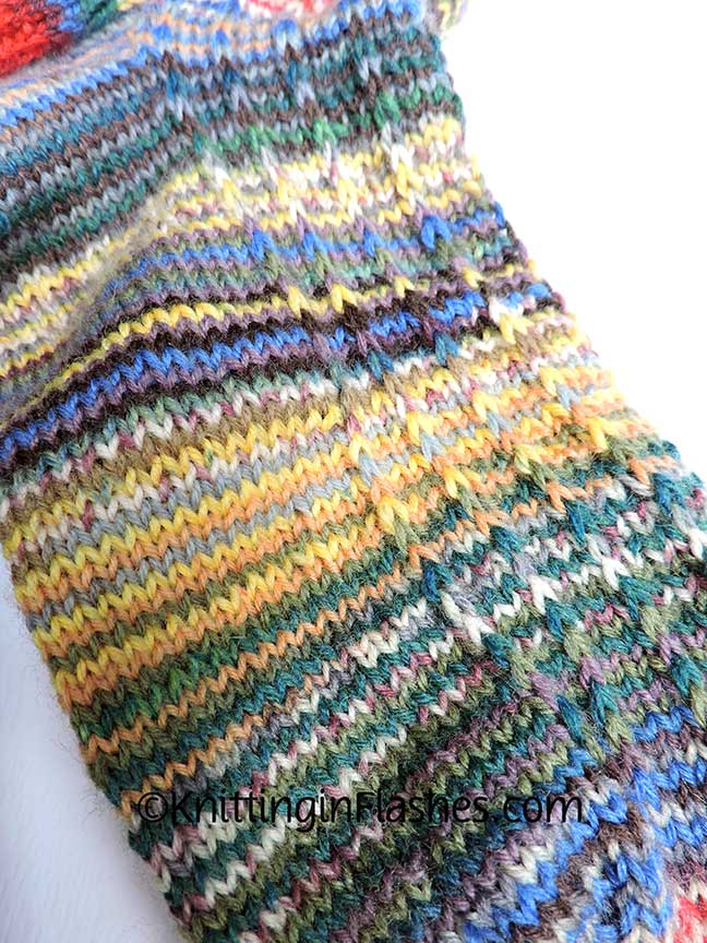 Continuing on with Dorothy’s Slipped Stitch Spiral knit sock pattern, I bring you a tri-color pair.