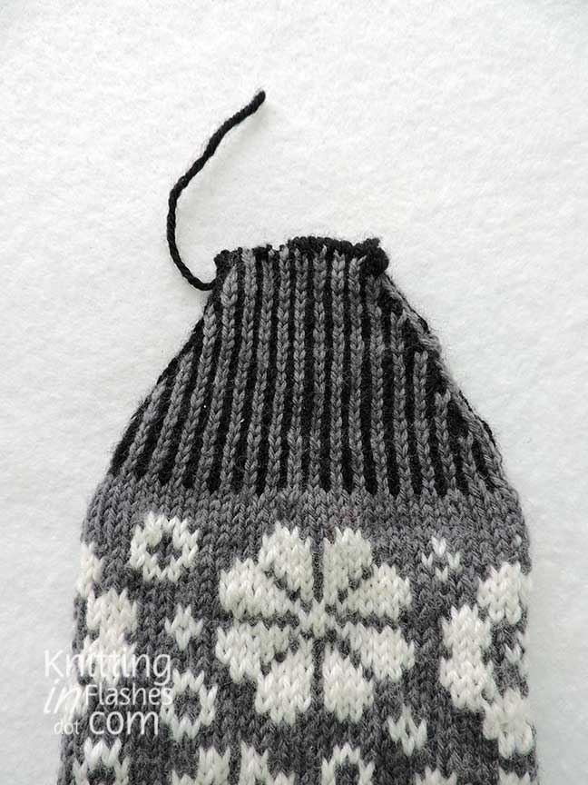 You can also see where I switched from the double-point needles to the circulars. The decrease stitches are less pronounced once I could knit smoothly over them.
