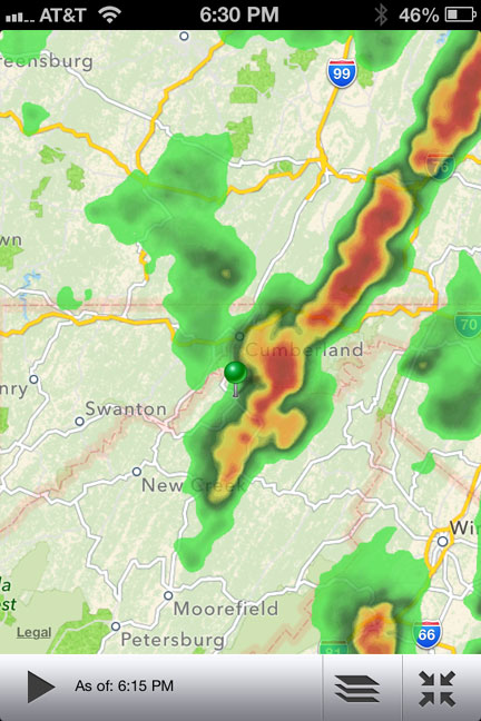 I’m just a little to the northwest of that green pin in the radar right where the yellow blob is heading